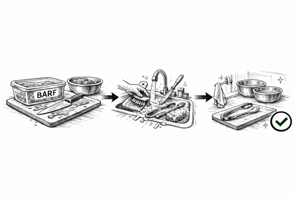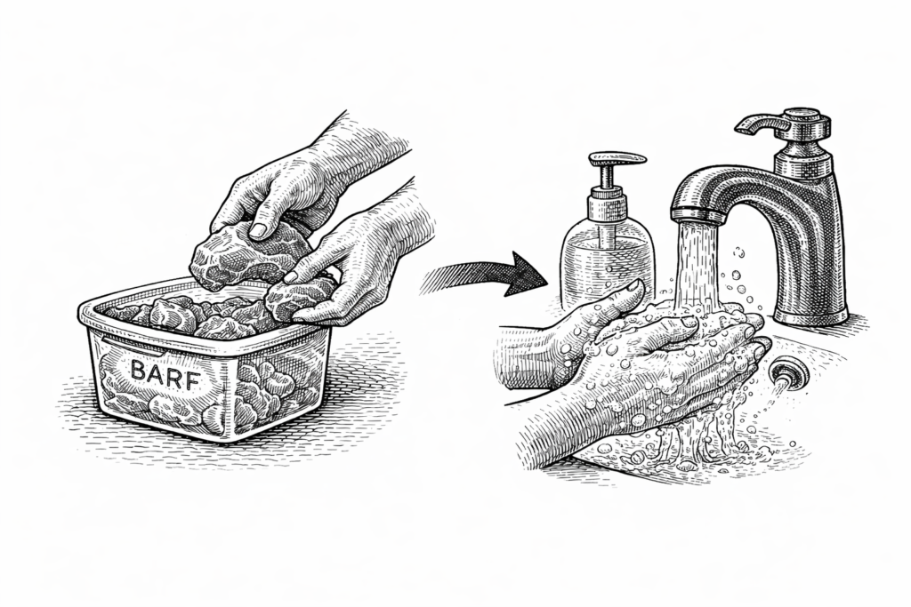 Realice una adecuada higiene de manos tras la manipulación de la dieta BARF, debido a que corresponde a carne cruda.