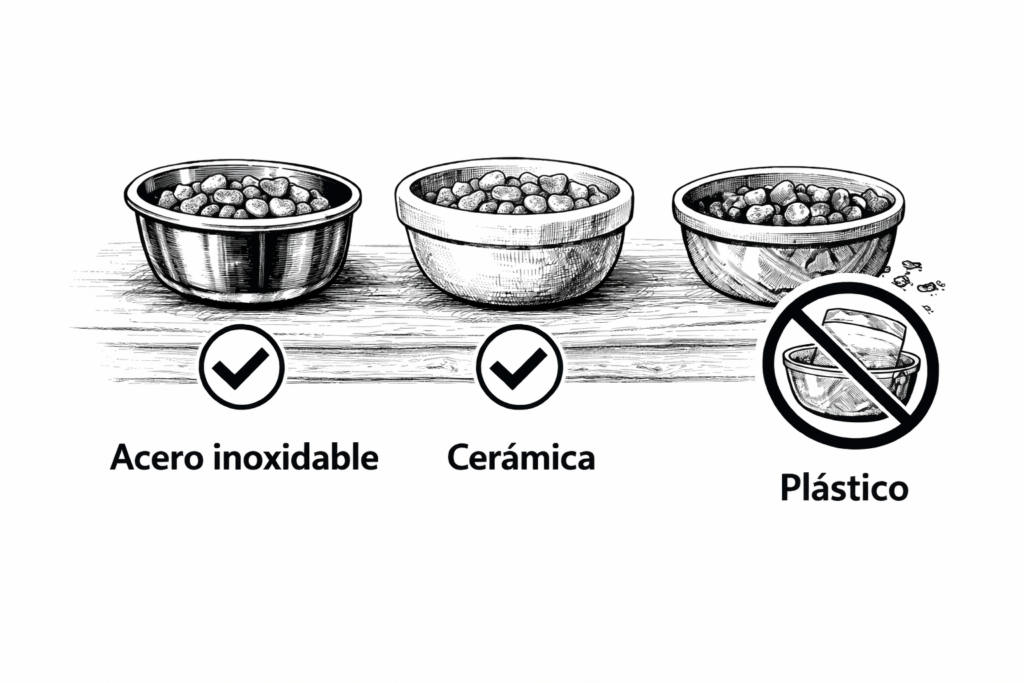Utilice recipientes de acero inoxidable o cerámica, debido a su baja porosidad y facilidad de desinfección, lo que reduce el riesgo de contaminación.